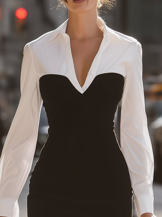 Chic Two-Tone Fitted Mini Dress With Shirt Collar Detail