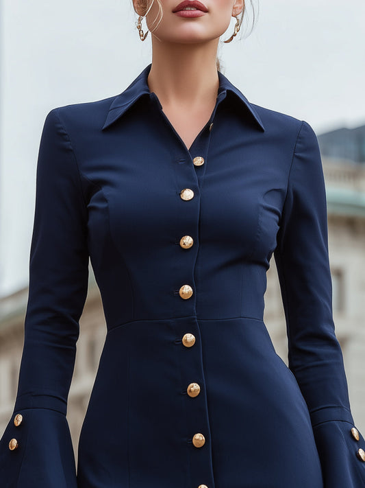 Elegant Lace Sleeve Double-Breasted Blazer Dress