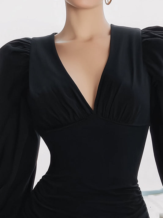 Elegant Ruched Keyhole Long Sleeve Maxi Dress