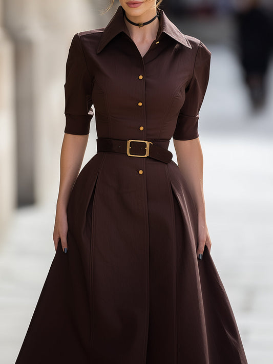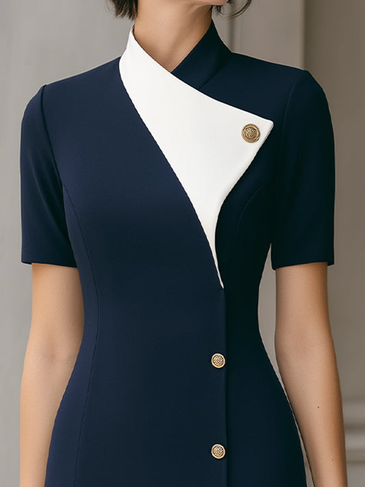 Elegant Contrast Collar Button-Front Fitted Sheath Dress