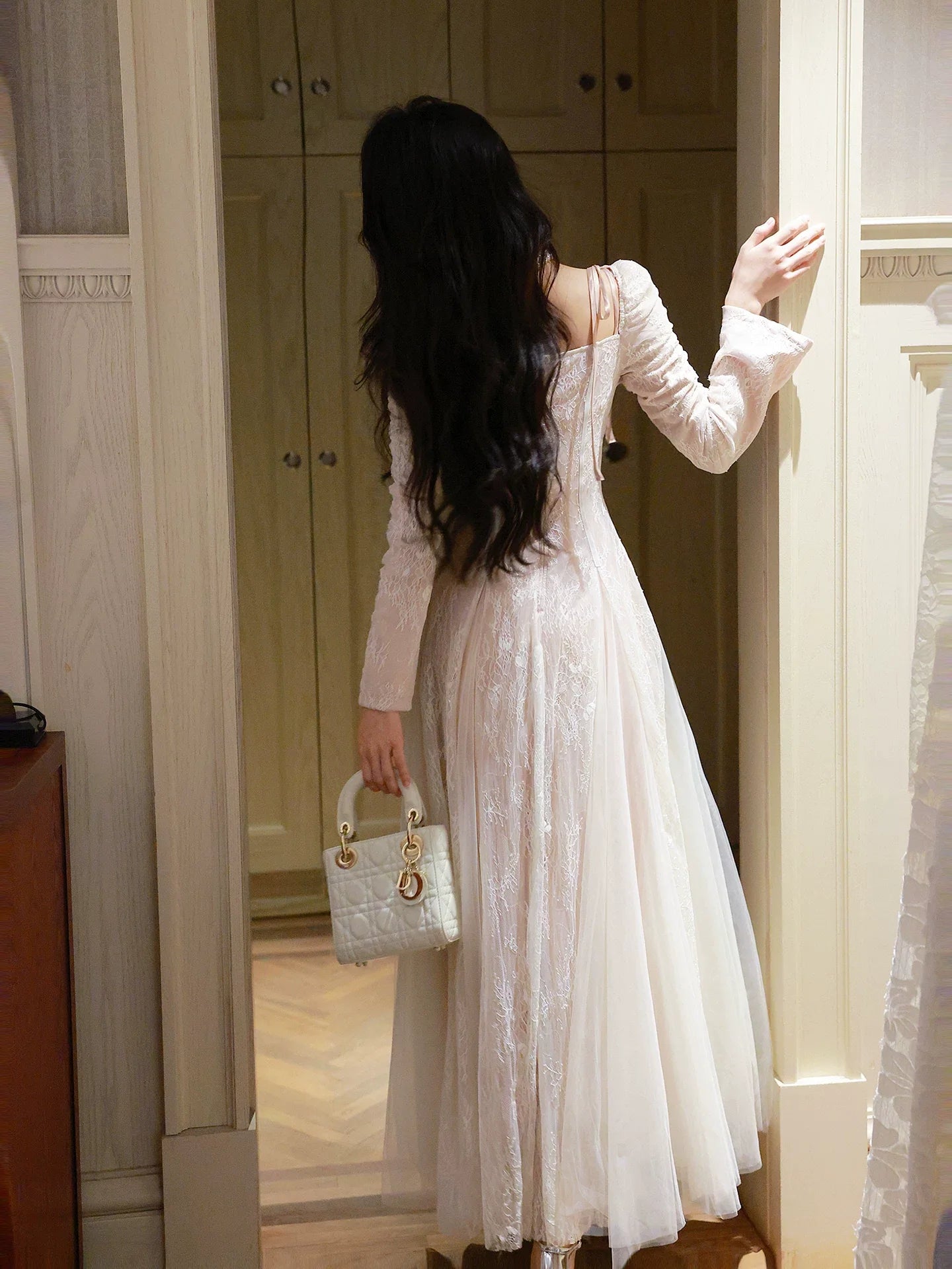 # Cute A Line Long Sleeves Lace Pleated Prom Dress This elegant prom dress combines timeless sophistication with contemporary charm. The A-line silhouette flatters all body types while the delicate lace detailing adds refined texture and visual interest. Long sleeves provide graceful coverage and extend the dress's versatility across seasons, making it suitable for various formal occasions. The pleated design creates beautiful movement and dimension, ensuring you'll turn heads as you walk. Crafted with attention to detail, this dress strikes the perfect balance between classic elegance and youthful appeal, making it an ideal choice for prom night or any special formal event.
