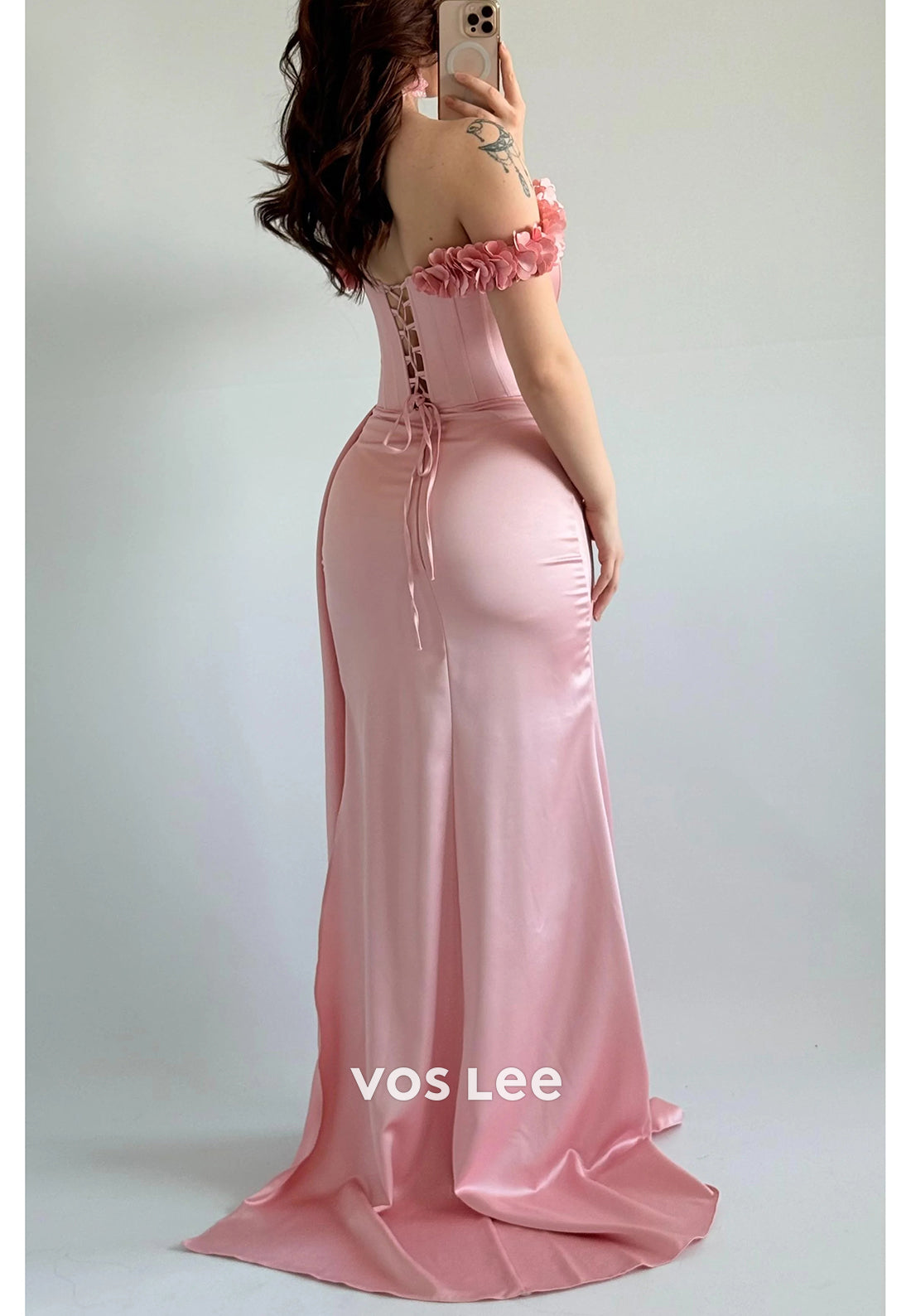 Off the Shoulder Floral Embellished Floor-Length Pleated Mermaid Evening Dresses