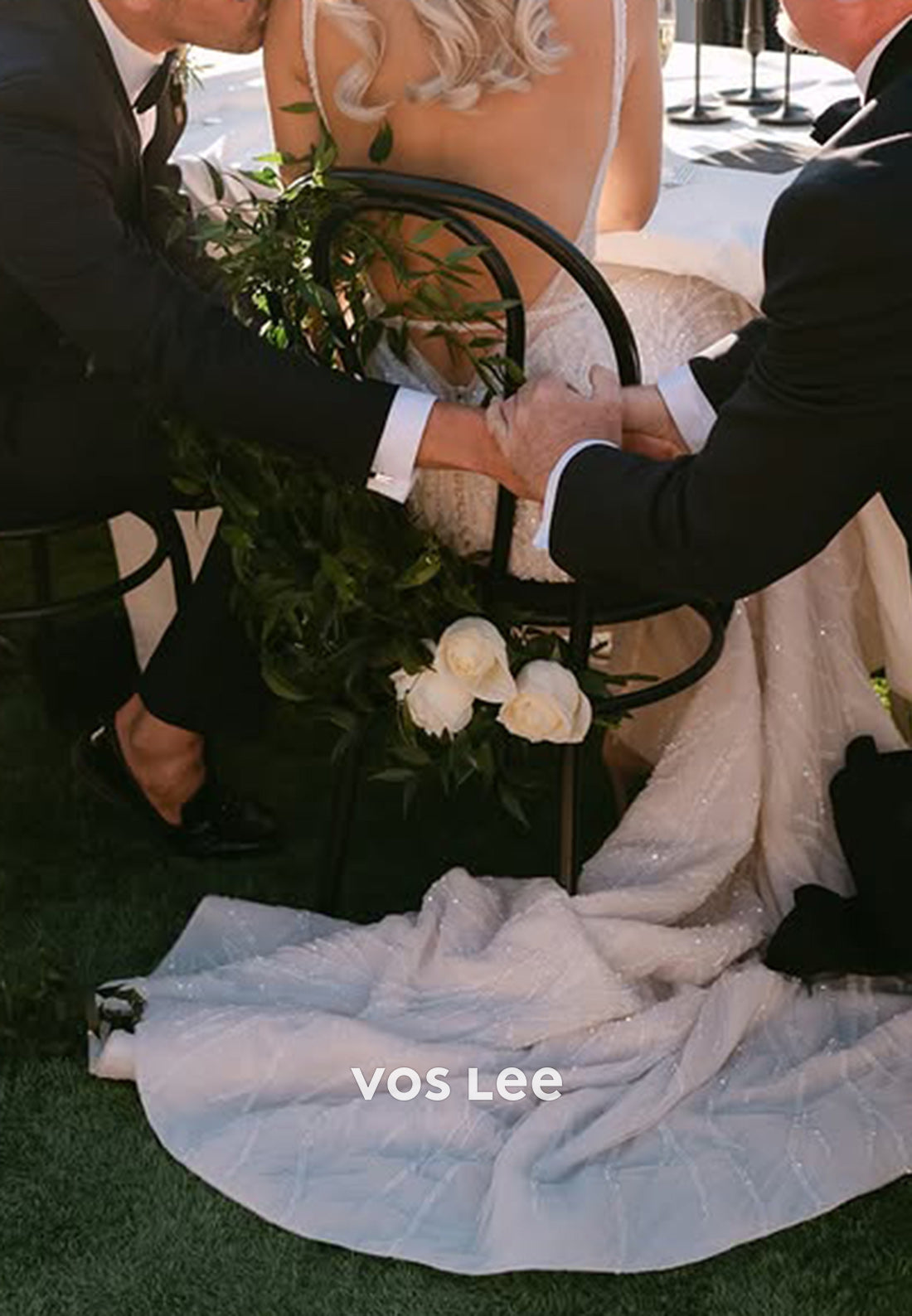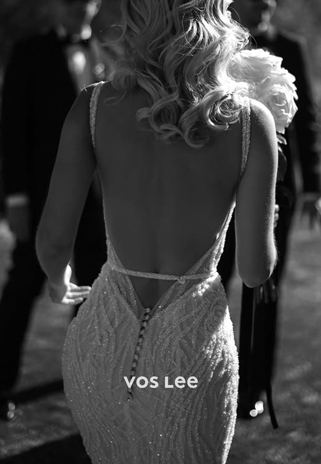 Sexy & Hot Spaghetti Straps Square Beach Mermaid Wedding Dresses with Sweep Train