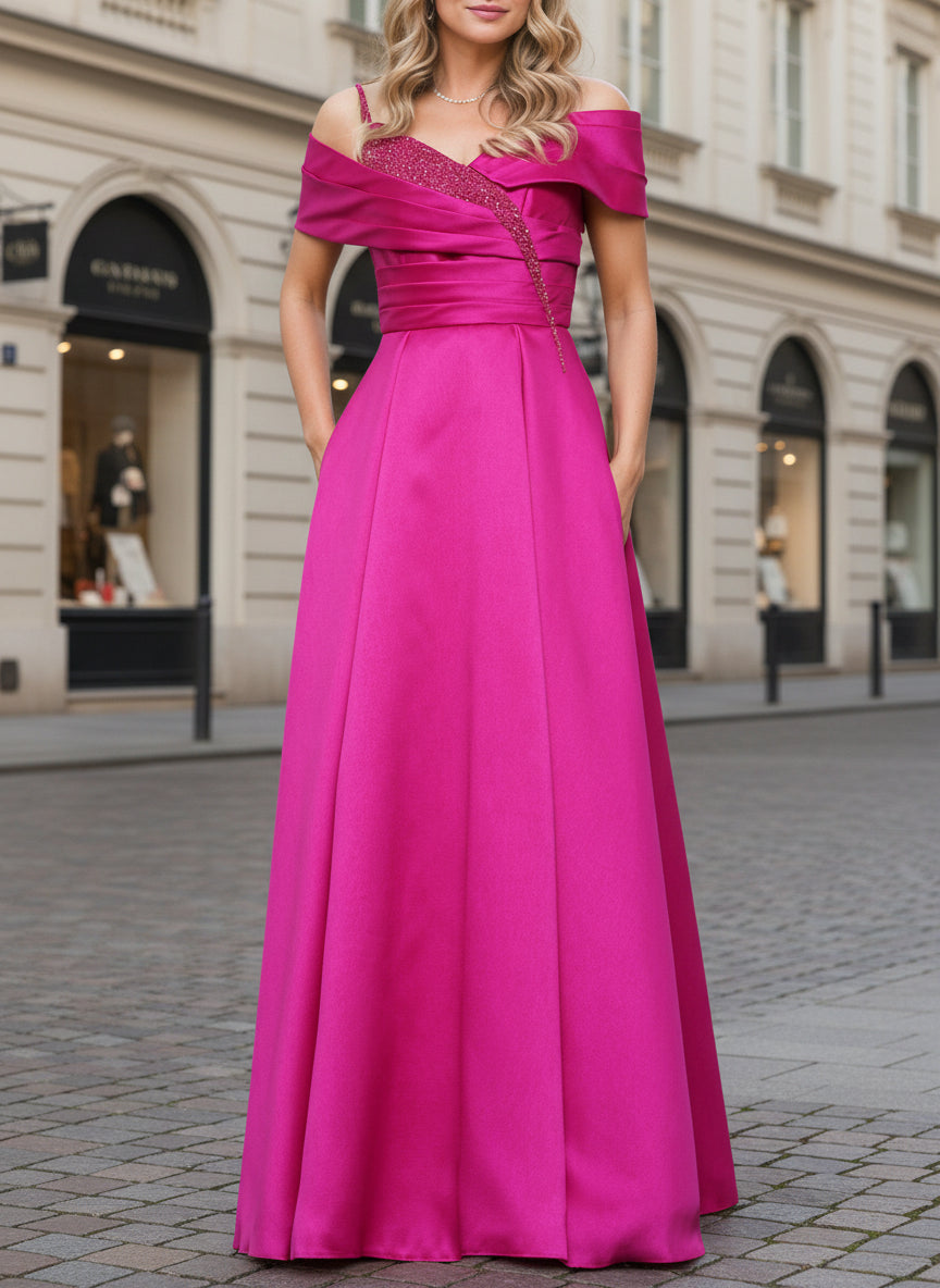 This elegant Satin A-Line dress features delicate straps, designed specifically for the mother of the bride. Its flowing silhouette offers a flattering fit that balances comfort and style. Crafted with smooth satin fabric, the dress provides a refined, sophisticated look suitable for formal wedding occasions. The shade brings timeless versatility, ensuring the wearer looks both graceful and poised.