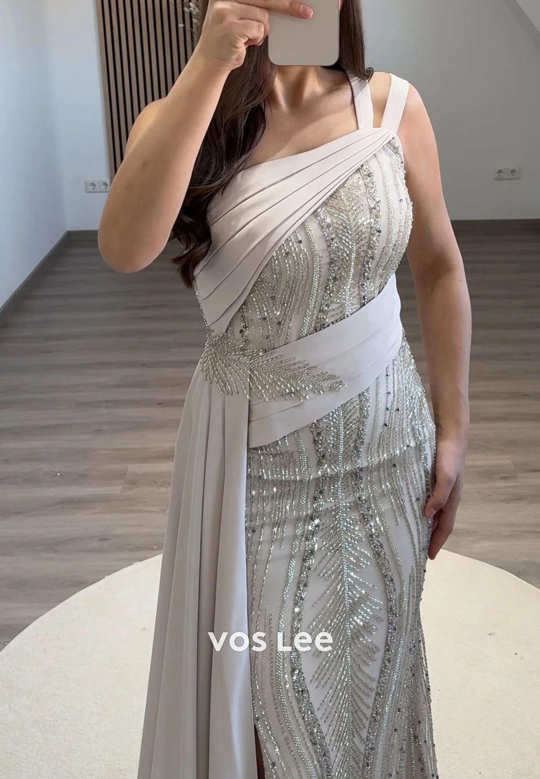 Sparkle & Shine One Shoulder Fully Beaded Mermaid Evening Dresses with Sweep Train