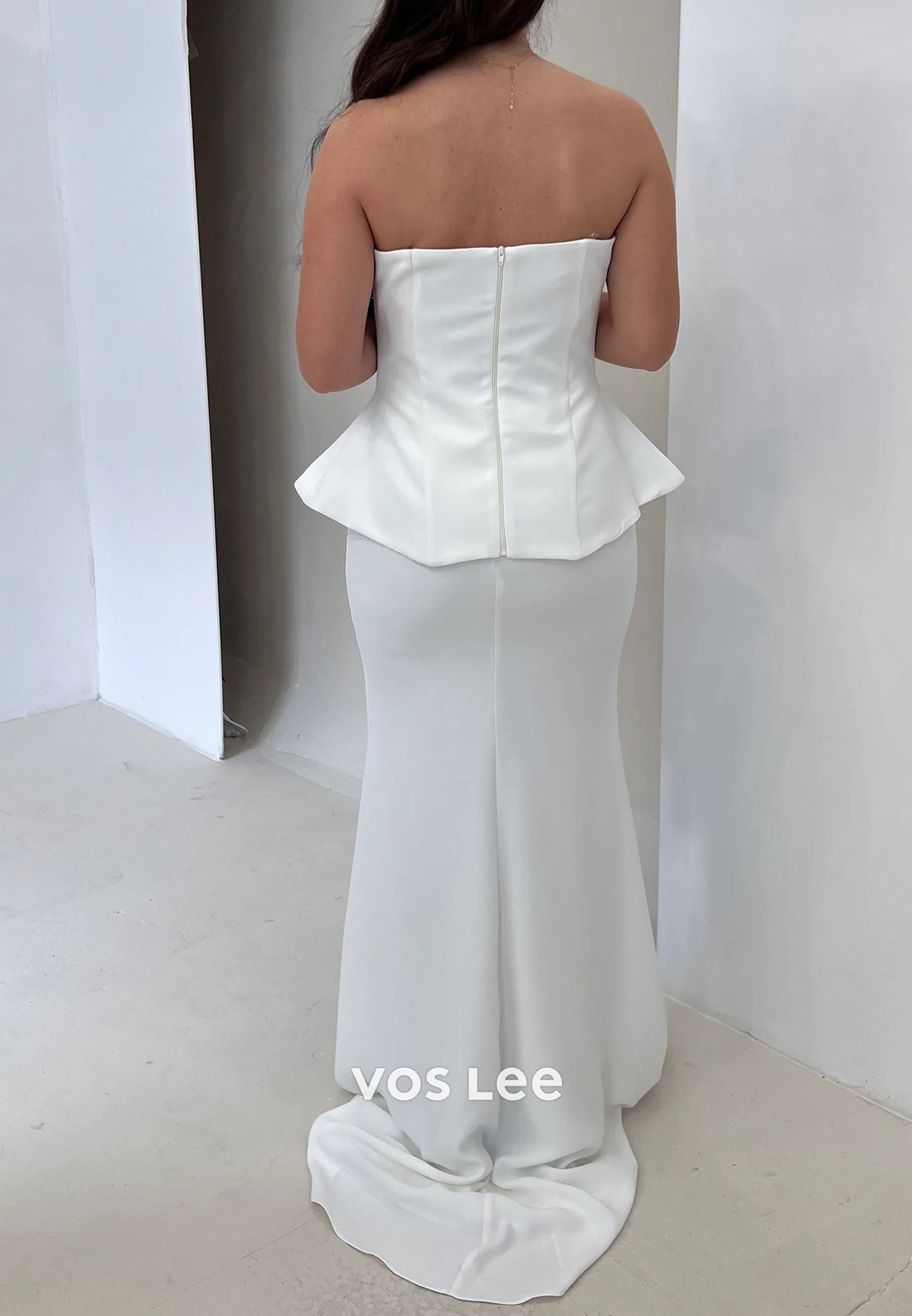 This elegant evening dress features a timeless two-piece design with a strapless neckline and pleated mermaid silhouette. Crafted with high-quality materials, it offers a classic look with a modern twist. Perfect for any formal event, this dress will make you feel confident and stylish.