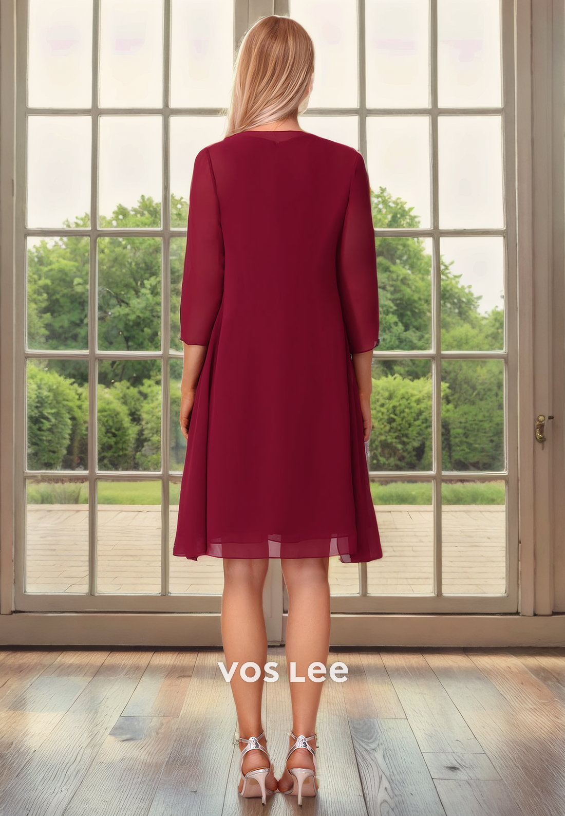 A-Line Round Strapless Two Pieces Short Chiffon Mother of the Bride Dress/Cocktail Dress