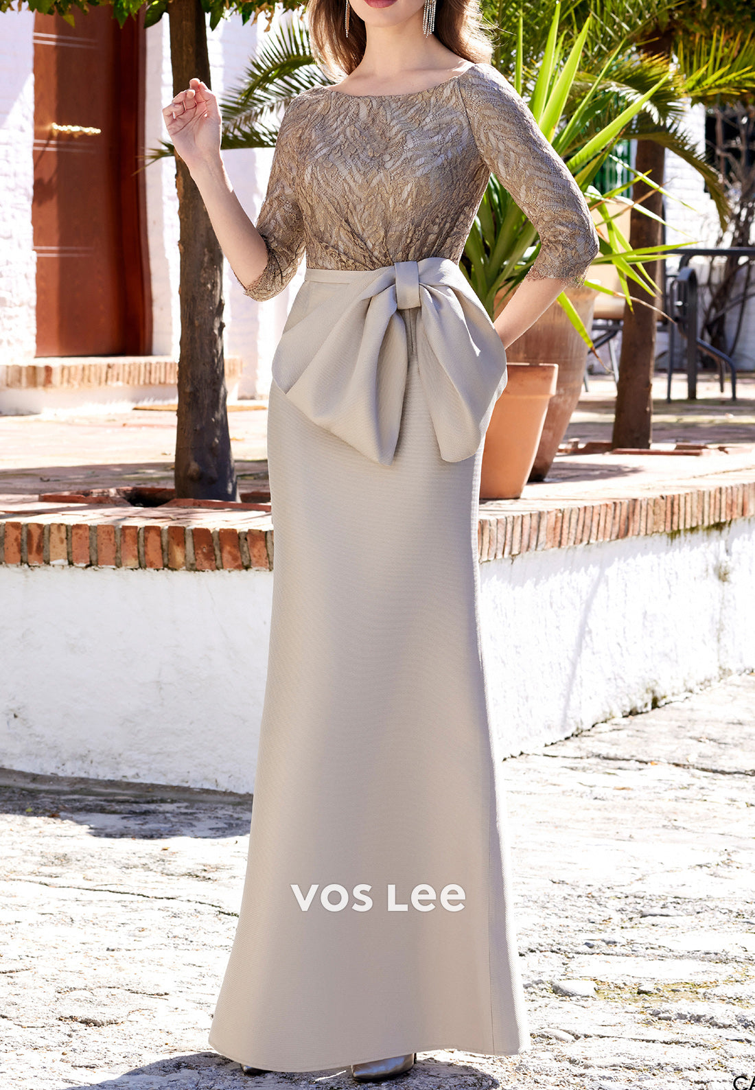 This elegant A-line dress features a timeless design with 3/4 sleeves, scoop neckline, and a flattering bowknot waist detail. Perfect for mothers of the bride, this floor-length dress exudes sophistication and style. Made with high-quality materials, it offers comfort and effortless elegance for any special occasion.