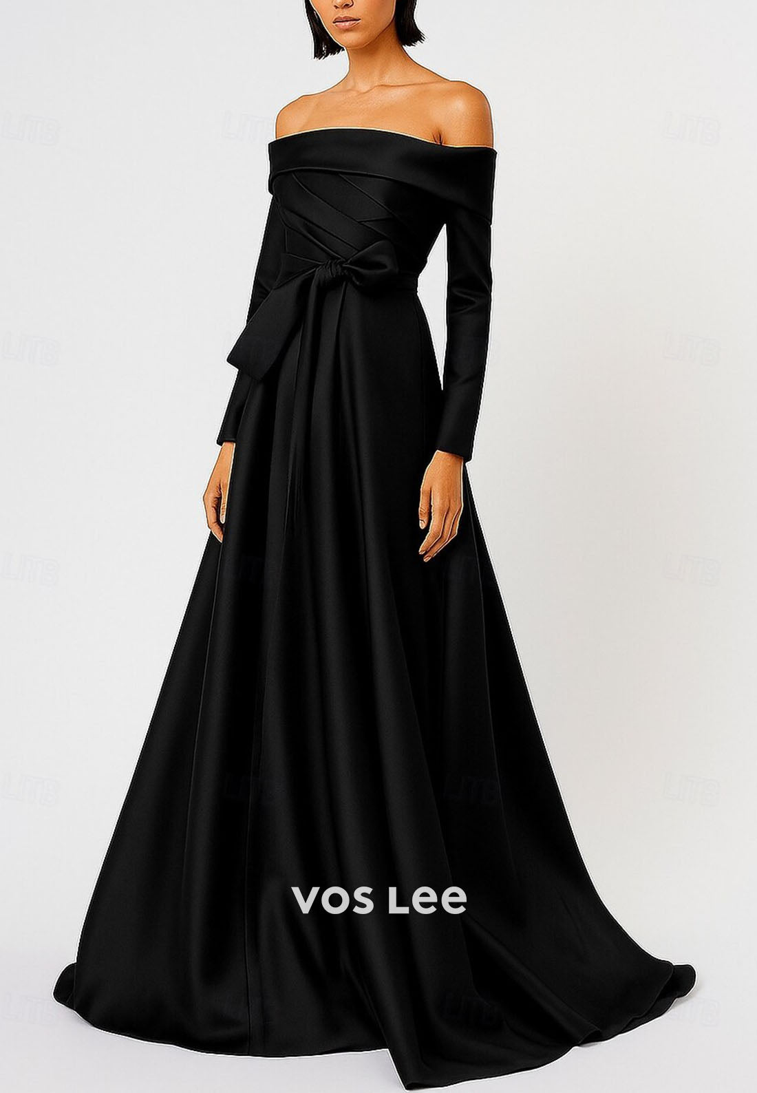 Exude refined femininity in this graceful evening gown, where luxurious silk meets thoughtful design. The off-shoulder neckline showcases elegant shoulders, while sumptuous long sleeves drape with fluid sophistication. The classic A-line silhouette flatters every figure, flowing from the bodice with effortless grace, and an artful bow detail adds a signature flourish of understated glamour. Crafted for the woman who appreciates investment pieces that balance romantic elements with modern restraint, this gown delivers the poise and presence essential for formal celebrations and memorable occasions.