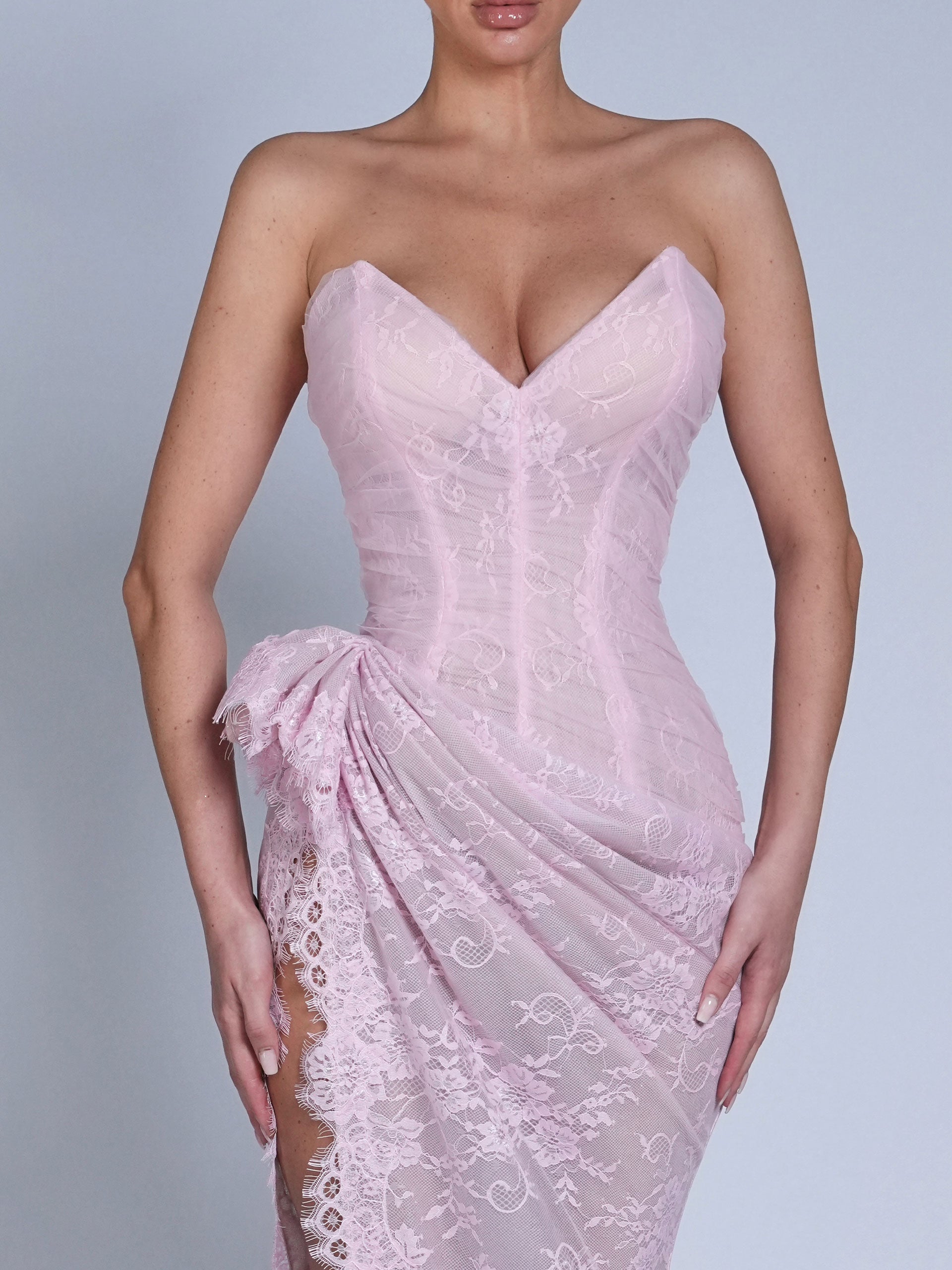 Blush Pink Lace Corset Gown – Romantic Princess Elegance x 1;