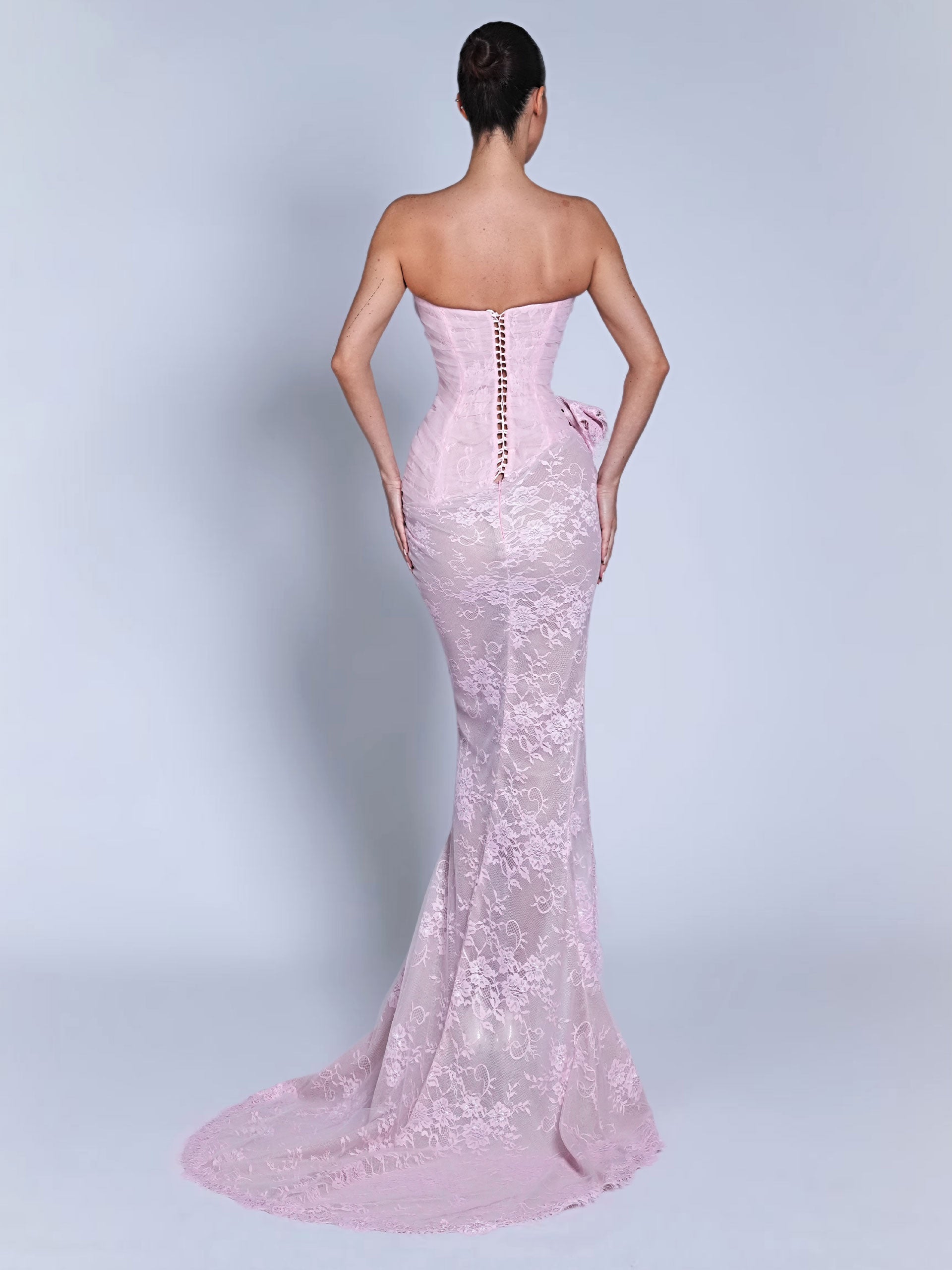 Blush Pink Lace Corset Gown – Romantic Princess Elegance