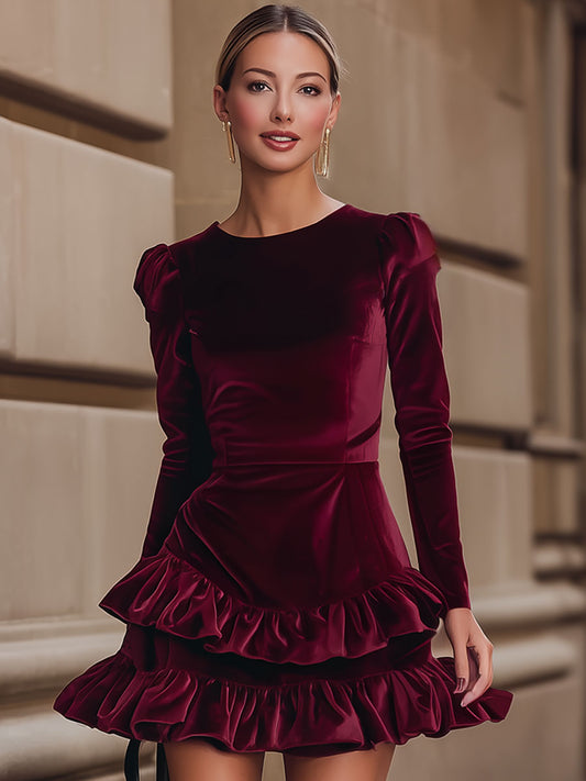 Elegant Burgundy Velvet Ruffle Dress - Perfect For Every Occasion