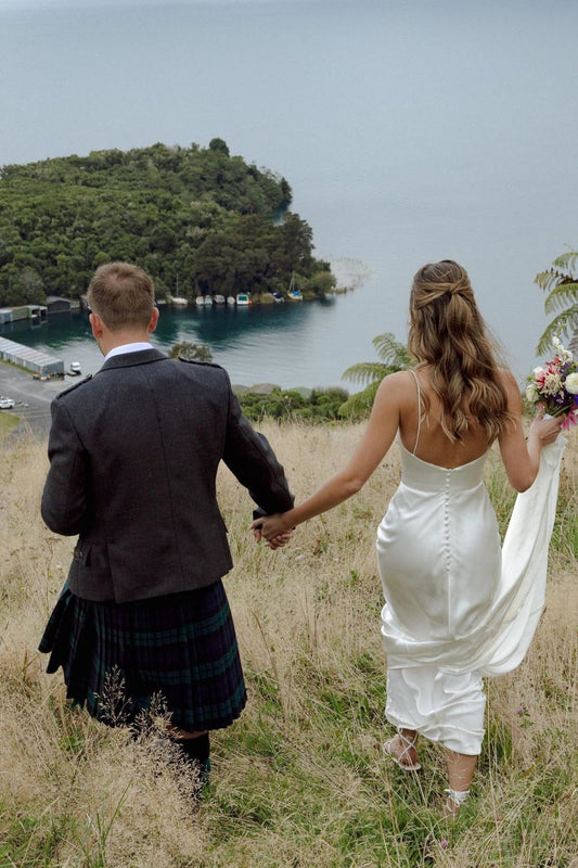 Simple Off-Shoulder Zipper Back Mini Wedding Dress With Detached Train