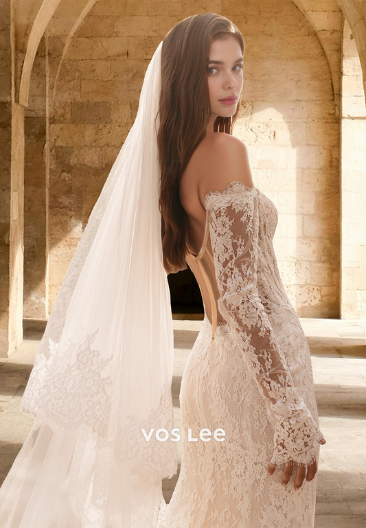 Luxury Mermaid Off Shoulder Long Sleeves Lace Appliques Wedding Bride Dress