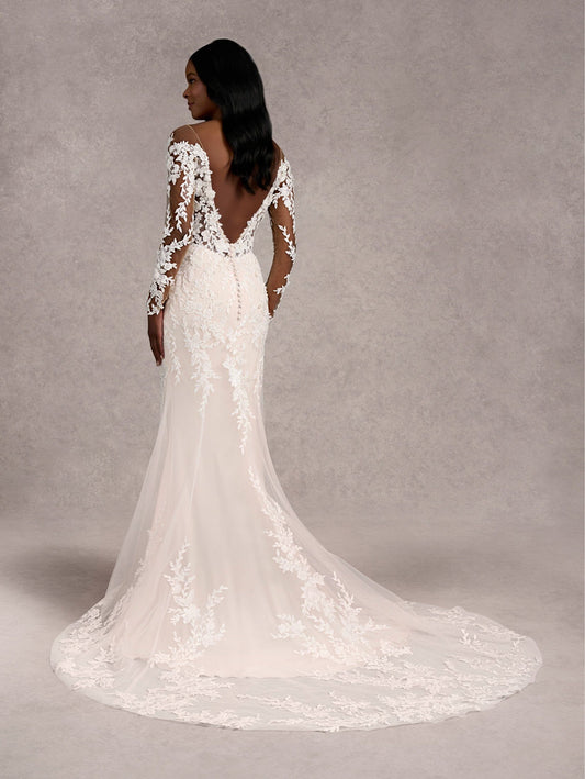 Decadent Applique Long Sleeve Column Bridal Gown