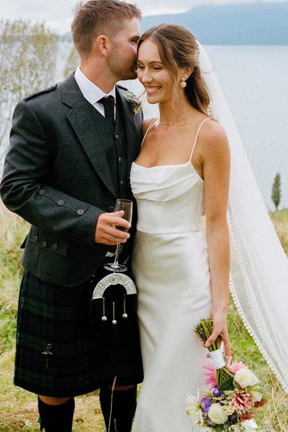 Glide down the aisle in timeless elegance with this sophisticated mermaid bridal gown. Crafted from luxurious white satin, the design features delicate spaghetti straps that frame the shoulders with understated grace. The fitted silhouette flows into a graceful sweep train, creating a dramatic yet refined entrance. Perfect for the bride seeking classic beauty without excessive embellishment, this gown celebrates the fabric's natural luminosity and your natural radiance.