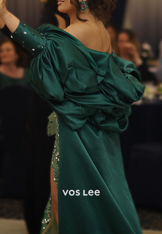 Asymmetrical Neck Long Sleeve Ruched Mermaid Evening Dresses with Side Split