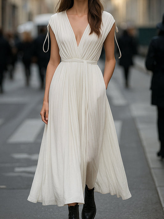 Elegant Sleeveless Pleated Chiffon Midi Dress MYA2470E5V_White||XS||YU