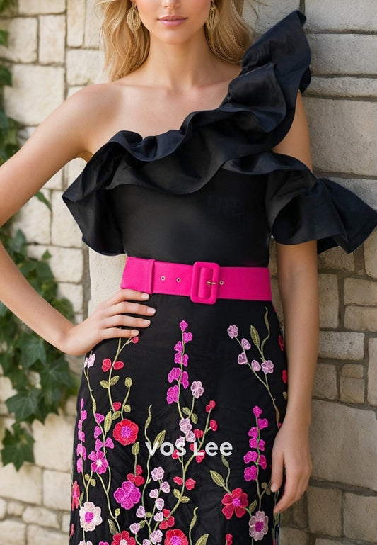 Elegant Black Ruffle Hem Dress Wedding Guest Dresses