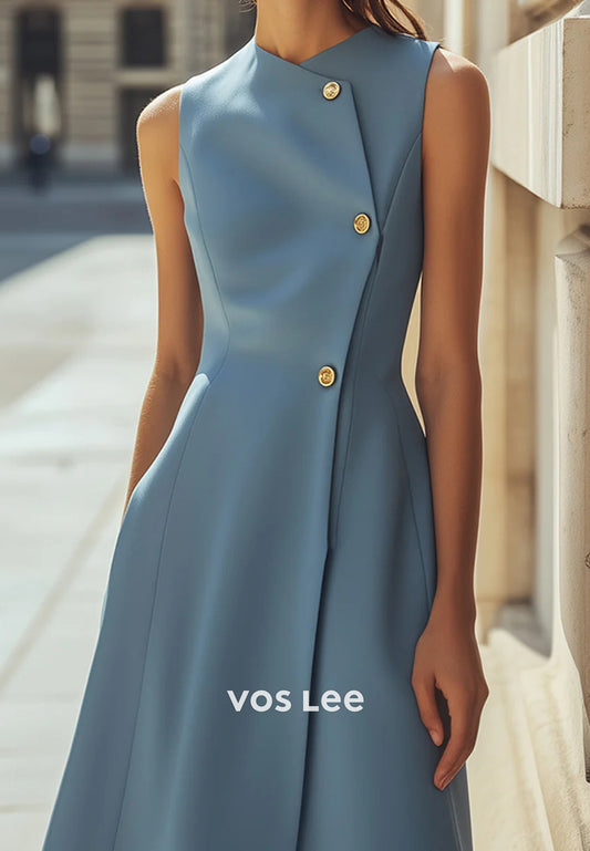 Elegant Contrast Trim Sleeveless Button Detail Dress Wedding Guest Dresses
