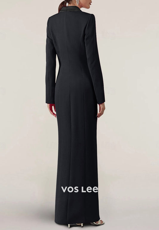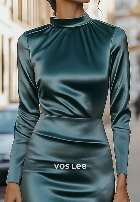 Simple Long Sleeve High Neck Ankle-Length Pleated Mermaid Wedding Guest Dresses