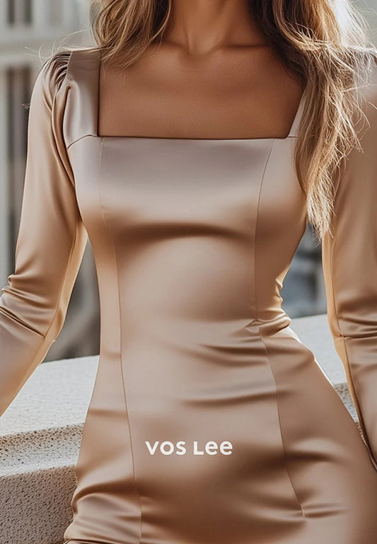 Classic & Timeless Mini Long Sleeve Square Pleated Mermaid Wedding Guest Dresses