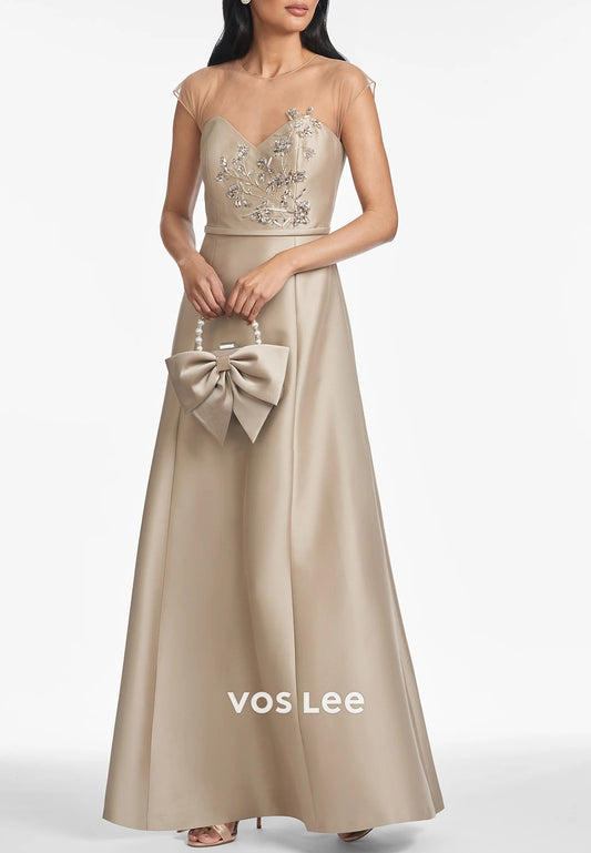 A-Line Illusion Neck Sequins Embellished Floor-Length Pleated Mother of Bride Dresses