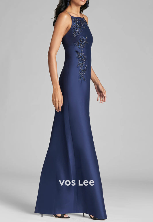 Spaghetti Straps Square Floral Embroidered Beading Sheath Mother of Bride Dresses