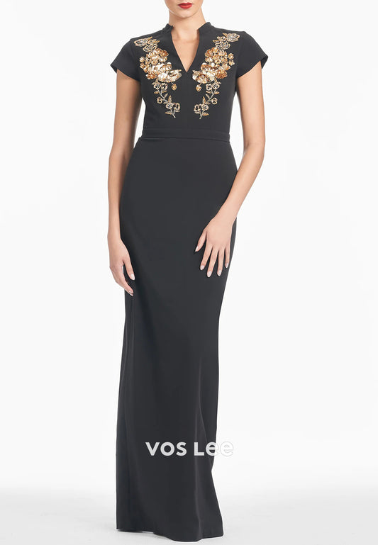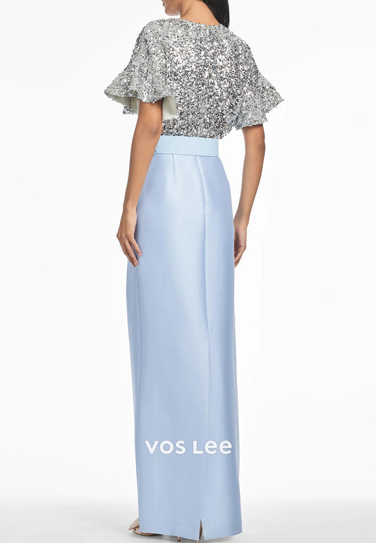 Sparkle & Shine Bell Sleeves V Neck Floor-Length Sheath Wedding Guest Dresses