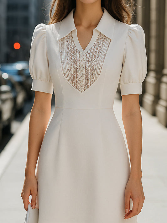 Polished Charm Midi Dress With Collar Detail Wedding Guest Dresses