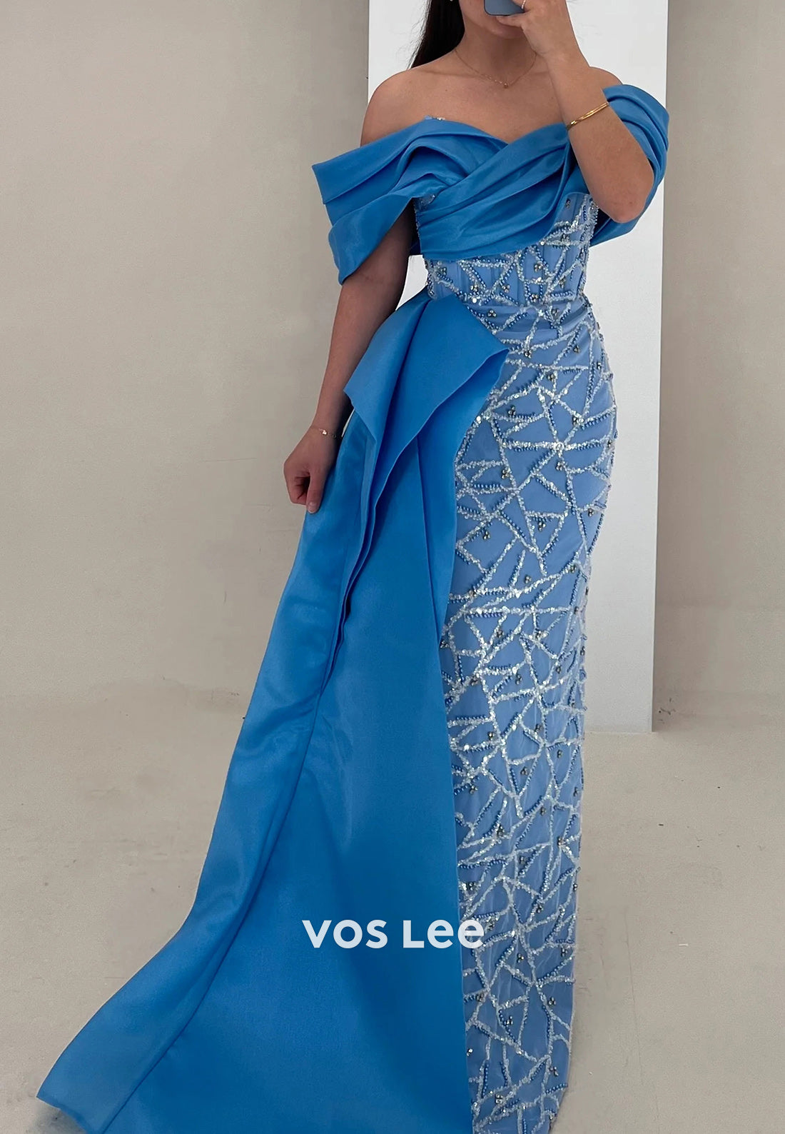 Off the Shoulder Fully Beaded Sequins Pleated Mermaid Evening Dresses with Sweep Train