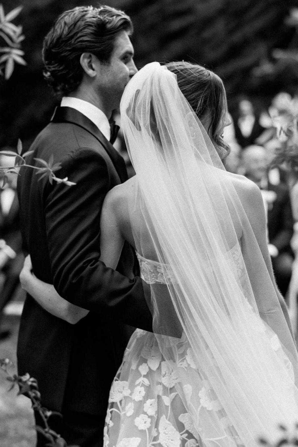 An exquisite A-line silhouette crafted from luxurious white tulle, this strapless wedding gown epitomizes timeless elegance. Delicate appliqués adorning the bodice and skirt add refined dimension and movement, while the floor-length design creates a dramatic, romantic presence. The structured strapless neckline flatters the shoulders and décolletage, allowing the intricate beadwork to command attention. Perfect for the bride seeking understated sophistication with architectural grace, this gown transitions seamlessly from ceremony to celebration.