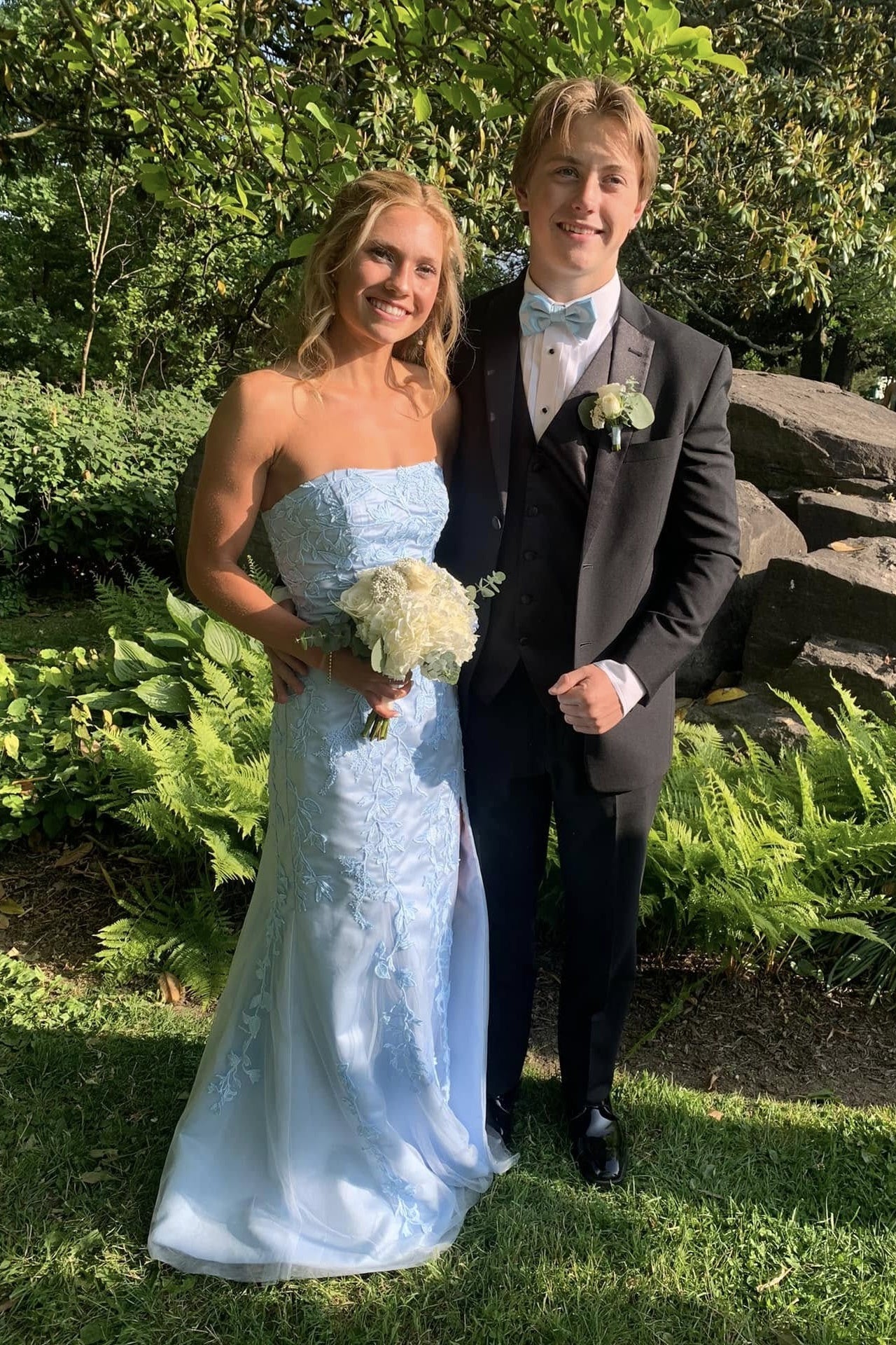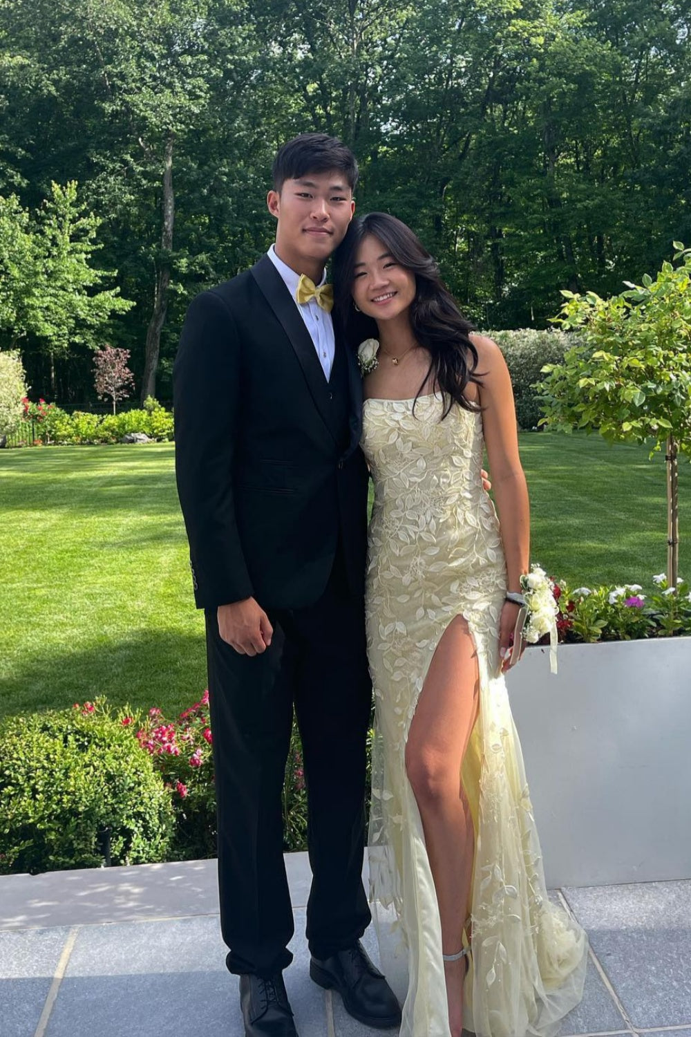 Strapless Yellow Lace Appliques Mermaid Long Dress x 1;